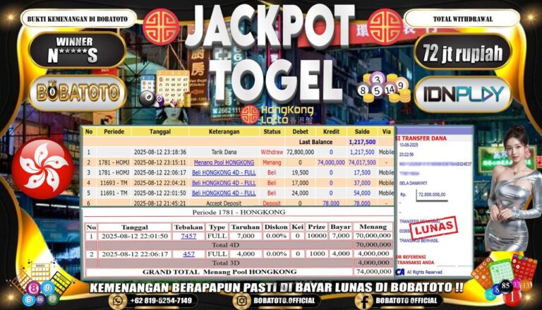 BOBATOTO JACKPOT TOGEL HONGKONG LOTTO Rp.72,000,000,- LUNAS!!