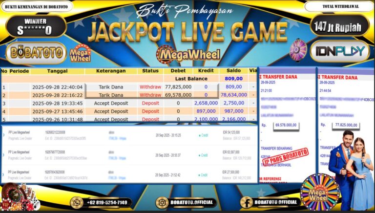 BOBATOTO – Selamat kepada User id : T*****99 Telah berhasil mendapatkan kemenangan besar pada permainan SLOT WISDOM OF ATHENA Dengan kemenangan Sebesar Rp.78,000,000,-. Setelah mengisi formulir withdraw dengan kurung waktu hanya 5 – 10 menit pihak bobatoto sudah melakukan transfer kepada pemilik Userid dan dana sudah dapat di cairkan oleh pemenang. Bukti pembayaran yang kami berikan merupakan bukti pembayaran yang SAH /…