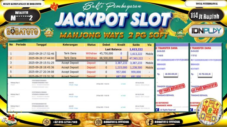 BOBATOTO – Selamat kepada User id :B******T Telah berhasil mendapatkan kemenangan besar pada permainan SLOT MAHJONG WAYS 2 Dengan kemenangan Sebesar Rp.84,000,000-. Setelah mengisi formulir withdraw dengan kurung waktu hanya 5 – 10 menit pihak bobatoto sudah melakukan transfer kepada pemilik Userid dan dana sudah dapat di cairkan oleh pemenang. Bukti pembayaran yang kami berikan merupakan bukti pembayaran yang SAH /…