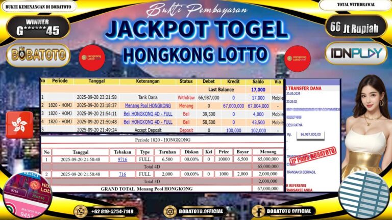 BOBATOTO JACKPOT TOGEL HONGKONG LOTTO Rp.70,000,000,- LUNAS!!