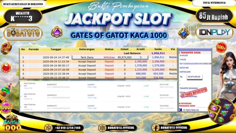 BOBATOTO – Selamat kepada User id : K*****S Telah berhasil mendapatkan kemenangan besar pada permainan SLOT PRAGMATIC SUGAR RUSH 1000 Dengan kemenangan Sebesar Rp.85,000,000,-. Setelah mengisi formulir withdraw dengan kurung waktu hanya 5 – 10 menit pihak bobatoto sudah melakukan transfer kepada pemilik Userid dan dana sudah dapat di cairkan oleh pemenang. Bukti pembayaran yang kami berikan merupakan bukti pembayaran yang SAH…