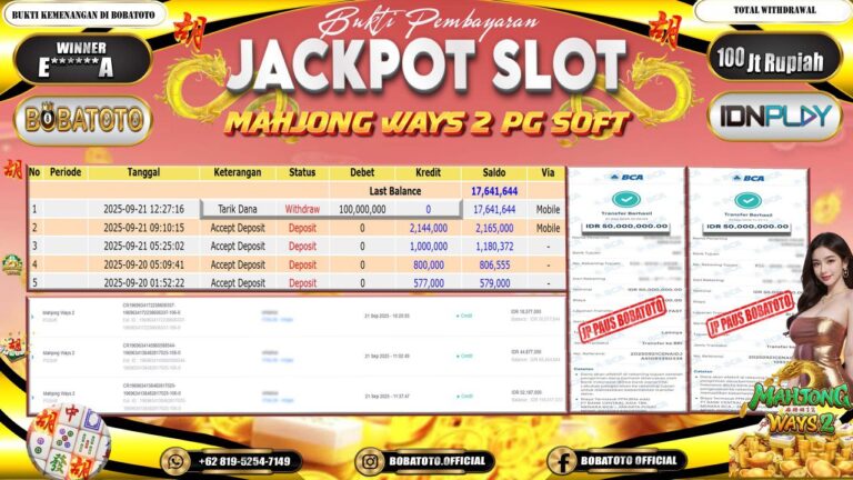 BOBATOTO JACKPOT SLOT MAHJONG WINS-2 Rp.50,000,000- LUNAS!!