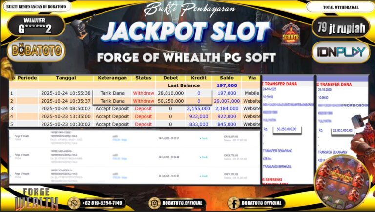 BOBATOTO – Selamat kepada User id :G******2 Telah berhasil mendapatkan kemenangan besar pada permainan SLOT FORGE OF WHEALTH Dengan kemenangan Sebesar Rp.79,000,000-. Setelah mengisi formulir withdraw dengan kurung waktu hanya 5 – 10 menit pihak bobatoto sudah melakukan transfer kepada pemilik Userid dan dana sudah dapat di cairkan oleh pemenang. Bukti pembayaran yang kami berikan merupakan bukti pembayaran yang SAH /…