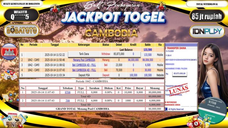 BOBATOTO JACKPOT TOGEL CAMBODIA Rp.85,000,000,- LUNAS!!
