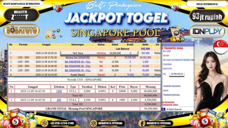 BOBATOTO – Selamat kepada User id : Z*****T Telah berhasil mendapatkan kemenangan besar pada permainan TOGEL SINGAPORE Dengan kemenangan Sebesar Rp.93,000,000,-. Setelah mengisi formulir withdraw dengan kurung waktu hanya 5 – 10 menit pihak bobatoto sudah melakukan transfer kepada pemilik Userid dan dana sudah dapat di cairkan oleh pemenang. Bukti pembayaran yang kami berikan merupakan bukti pembayaran yang SAH / VALID yang langung…
