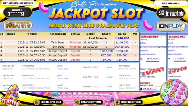 BOBATOTO – Selamat kepada User id : K*****S Telah berhasil mendapatkan kemenangan besar pada permainan SLOT PRAGMATIC SUGAR RUSH 1000 Dengan kemenangan Sebesar Rp.93,000,000,-. Setelah mengisi formulir withdraw dengan kurung waktu hanya 5 – 10 menit pihak bobatoto sudah melakukan transfer kepada pemilik Userid dan dana sudah dapat di cairkan oleh pemenang. Bukti pembayaran yang kami berikan merupakan bukti pembayaran yang SAH…