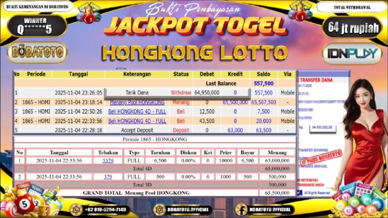 BOBATOTO JACKPOT TOGEL HONGKONG LOTTO Rp.64,000,000,- LUNAS!!