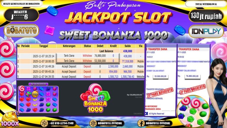 BOBATOTO – Selamat kepada User id : J*****6 Telah berhasil mendapatkan kemenangan besar pada permainan SLOT SWEET BONANZA 1000 Dengan kemenangan Sebesar Rp.130,000,000,-. Setelah mengisi formulir withdraw dengan kurung waktu hanya 5 – 10 menit pihak bobatoto sudah melakukan transfer kepada pemilik Userid dan dana sudah dapat di cairkan oleh pemenang. Bukti pembayaran yang kami berikan merupakan bukti pembayaran yang SAH…